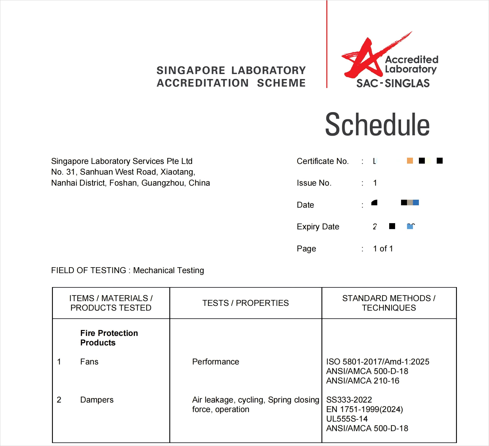 近日,南方风机股份有限公司检测实验室获得新加坡SAC的认可,并获授认可证书,成为新加坡SAC认证检测机构,可为通风机、阀门产品提供认证检测服务。